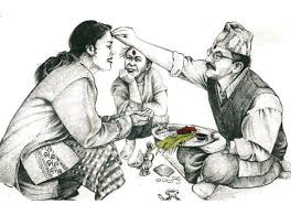 Bhai tika is the last, and the most important day of Tihar. In this day, the sisters apply Tika to their brothers’ forehead (and hence, given the name as ‘Bhai Tika’), thank them for the protection they give. The Tika is colourful, which consists of seven colors and called as ‘Saptarangi Tika’ in Nepali. Along with the Tika, the sisters offer garlands of Marigold and Chrysanthemum (nowadays the plastic readymade garlands are also used to some extent, in the case of scarcity of the flowers), sweets, and special dishes for them. The sisters pray for the brothers’ long lives, and have a talk with them, and enjoy the meal together.